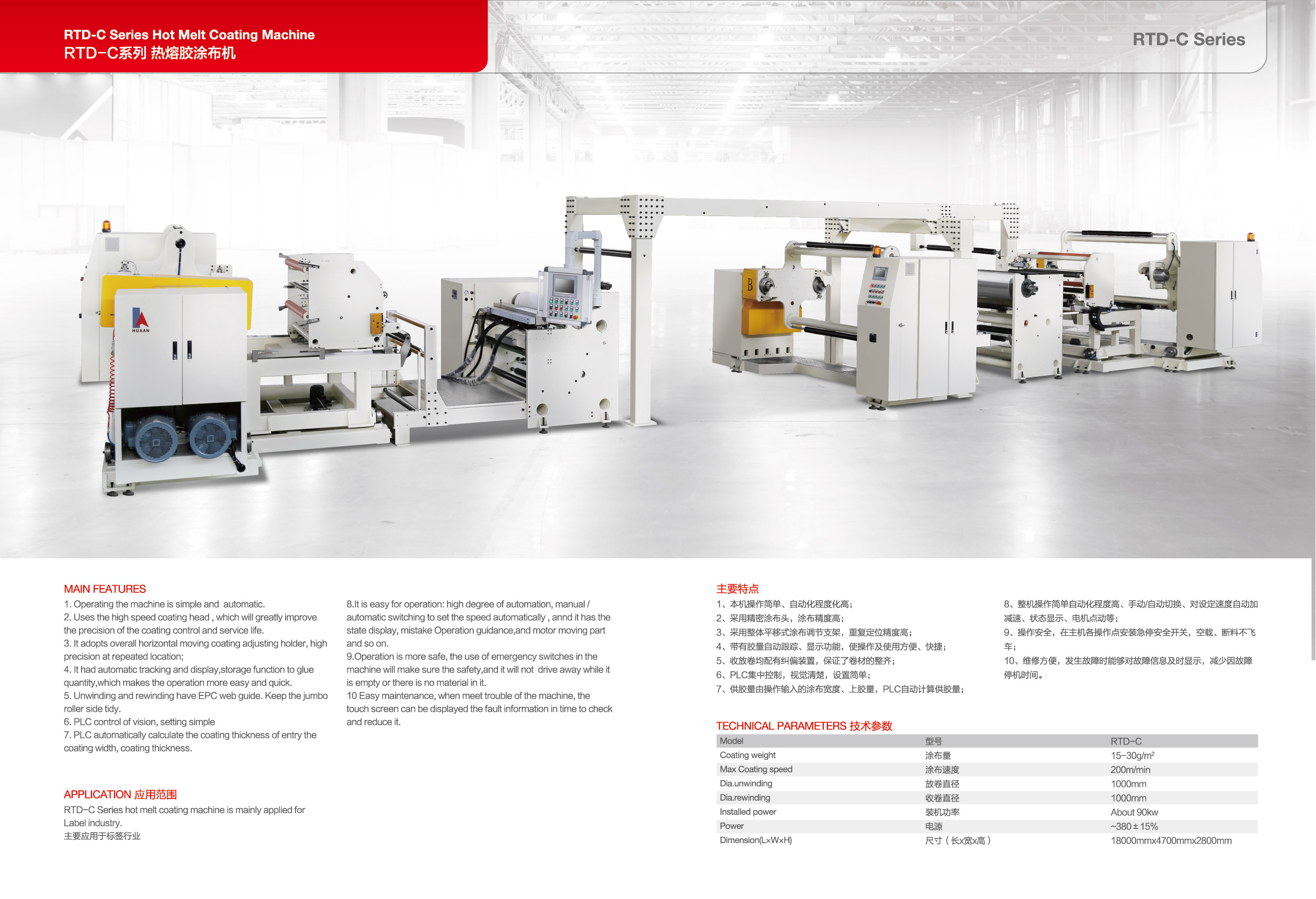 多年來,華安機械為熱熔膠涂布、復合領域提供了品種繁多的設備,產品廣泛應用于膠粘制品、防水、標簽、汽車內飾、醫用敷料、一次性婦幼用品、紙箱包裝、廣告耗材、鞋材、濾清器、熱熔膠膜、無紡布、化妝品填充、家具粘合、車燈粘合、電子、軟包裝、功能性服裝復合面料等多種行業。已經成功推出了RT系列、RT-B系列、RJT系列、RT-C系列等涂布機;新世紀2000A系列、H088、H288、H388系列噴膠機;PUR系列吸盤式熱熔膠機;RF系列復合機......